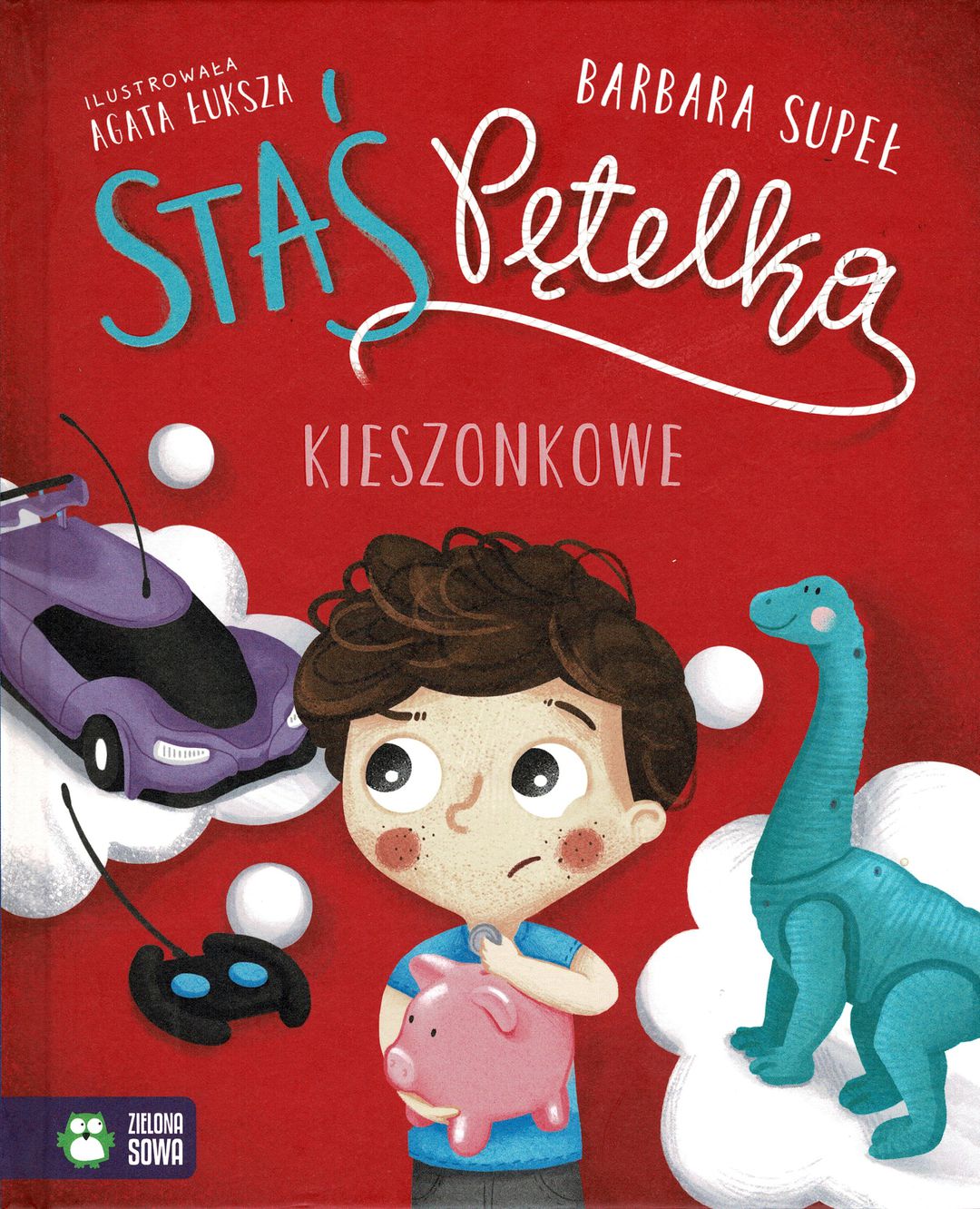 Staś Pętelka zbiera pieniądze do swojej świnki skarbonki. Pierwsze kieszonkowe przynosi chłopcu wiele dylematów. Czy monety są warte więcej niż banknoty? Dlaczego mama i tata wyciągają wypłatę ze ściany? Czy wydać wszystko od razu, czy poczekać, aż uzbiera się więcej? Ile są warte używane zabawki? Czy dinozaur jest fajniejszy niż auto? I wreszcie: czy można wydać dwa razy jedno kieszonkowe? Bogato ilustrowana seria dla dzieci ukazuje istotne wydarzenia z życia przedszkolaka. Każde dziecko odnajdzie tu znane mu sytuacje i wraz ze Stasiem spotka się z emocjami, których samo doświadcza. Warto również poznać Jadzię Pętelkę, młodszą siostrę Stasia - bohaterkę serii dedykowanej maluszkom!